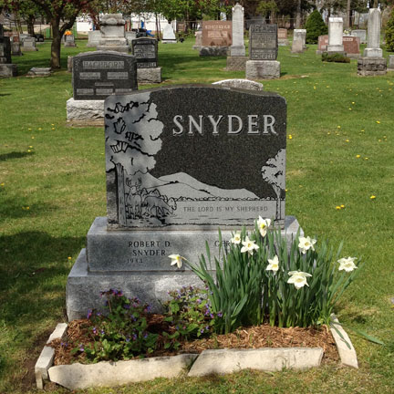 This lot had several graves with old burials that had never been marked with a monument. The stone was erected in 2013 by a descendant and commemorates his parents and identifies the other family members buried in these old graves. Room was left to add actual dates if this information ever becomes available. The names were very carefully arranged so that geneologists can clearly understand the connections between the various people on the stone. -
